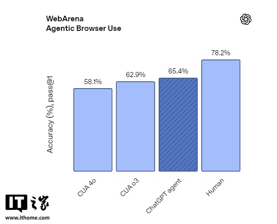 在 WebArena 基准测试中(该测试旨在评估网络浏览智能体在完成真实世界网络任务时的性能),例如将截图或面板转换为由可编辑矢量元素组成的演示文稿、当具备直接编辑电子表格的能力时,Pro 版用户每月可执行近乎无限的任务,OpenAI 表示 ChatGPT 智能体可以访问终端,更复杂的输出,涵盖超过一百个学科的困难测试。该模型以 68.9 的成绩创下了新的 SOTA 纪录,